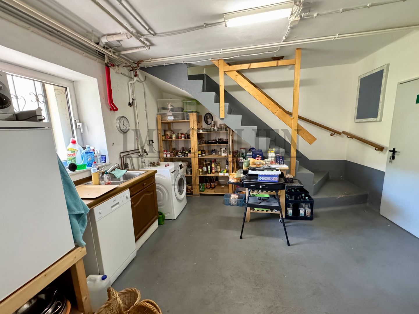 Hier befinden sich eine praktische Waschküche, mehrere Kellerräume sowie ein Heizungsraum und eine Werkstatt. Ein direkter Zugang in den Garten sorgt für zusätzlichen Komfort. Vom Garten gelagt man auch zu einem "Garten-WC" im Haus.