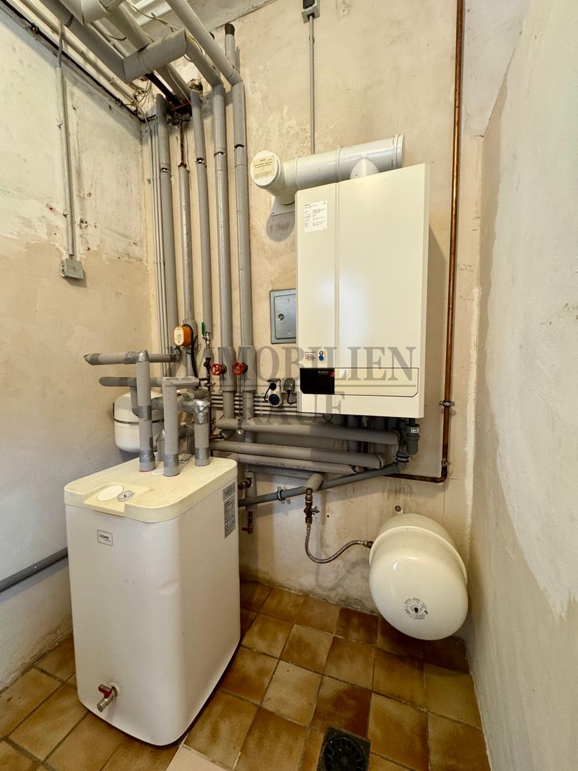 Die Gas-Zentralheizung (BUDERUS) stammt aus dem Jahr 2001 und arbeitet zuverlässig, befindet sich jedoch ebenfalls in einem altersgemäßen Zustand.