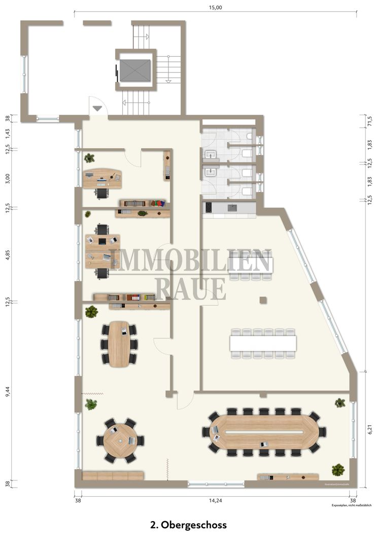 Die angebotenen Einheiten befinden sich im rechten Gebäudetrakt im 1. und 2. Obergeschoss und verfügen jeweils über ca. 225 m². Die Flächen können separat oder gemeinsam angemietet werden und eignen sich ideal für Unternehmen aus den Bereichen Verwaltung, Dienstleistung, Beratung oder Praxisbetrieb.