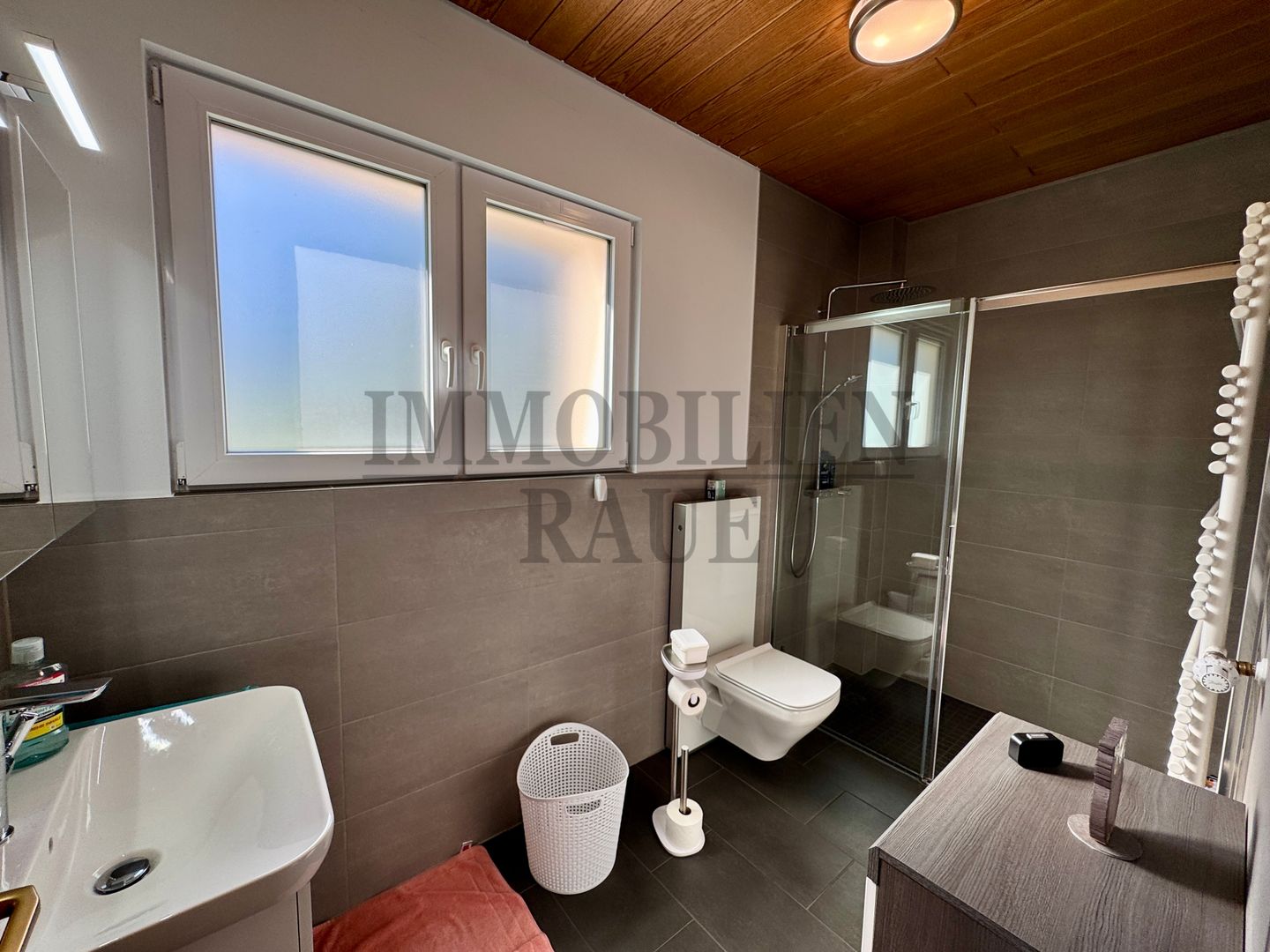 Zwei Schlafzimmer, 1 Durchgangszimmer mit Treppe zum Speicher, ein zweites modernes Bad mit bodentiefer Dusche